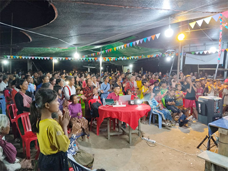 L’attente était à son comble, 3 jours d’enseignements chrétiens ayant pour titre : « Vivre comme un enfant de Dieu » selon Act. 26:17-18. Nos collègues, ici à Siempang ont travaillé d’arrache-pied les 3 dernières semaines pour préparer la logistique de cette conférence. Deux toilettes ont rapidement été construites par les chrétiens du village, ce qui évitaient de devoir trouver des arbres pour se soulager, commande de tentes pour ombrager les 250 – 300 participants attendus, acheter de la nourriture depuis Siempang (seulement 20 km) ou même Stung Treng (120 km), trouver des caisses à glace en suffisance, assurer la sonorisation, imaginer l’hébergement pour les personnes qui n’étaient pas du village… Que d’aller et retour pour superviser cette préparation.