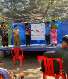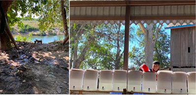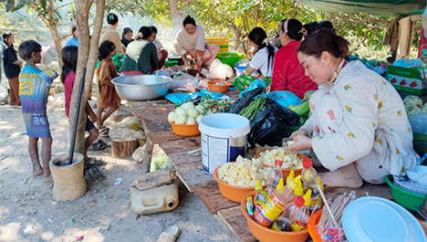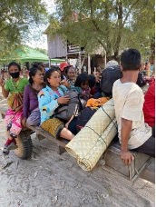 Les participants sont venus à pied, à moto ou encore en motoculteur. Toutes les générations étaient représentées. Les bagages étaient modestes, un hamac en guise de lit, une jaquette pour lutter contre le froid de la nuit et quelques autres petits effets. Juste derrière la place des fêtes, en bas du talus, une rivière était l’endroit idéal pour se rafraîchir et se débarbouiller. Une floppée de filtres à eau, provenant de JEM étaient régulièrement remplis grâce à un puit situé non loin. Les trois cuisinières venant de Siempang ont travaillé sans relâche pour nourrir trois fois par jour les quelques 250 participants kavet.